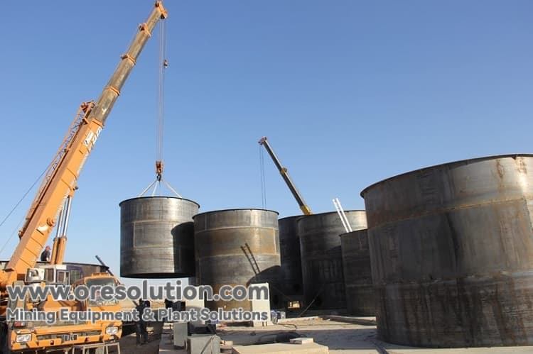 9 sets of leaching tanks are arranged in series, the first 2 sets are dedicated to cyanide leaching.