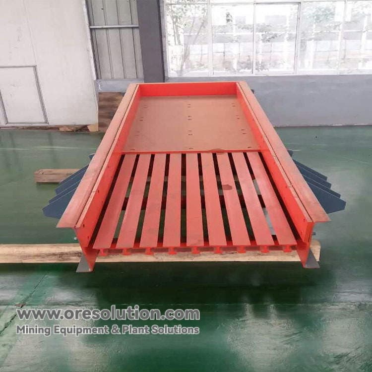 Electromagnetic vibrating feeder exciter electromagnetic coil using single-phase half-wave rectifier current supply. When the coil is energized in the positive half-week, the armature and the iron core generate pulse electromagnetic force to attract each other, at this time, the slot body backward movement, the main spring of the exciter deformation of the potential energy storage; in the negative half-week coil de-energized, the electromagnetic force disappeared, the main spring releases the energy to drive the armature and the core of the reverse direction of the separation, the slot body forward movement. Electromagnetic vibrating feeder to AC power frequency 3000 times per minute rate for reciprocating vibration.