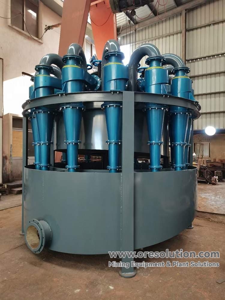 Hydrocyclone is a kind of high-efficiency centrifugal separation equipment, which is mainly used for the classification, desliming and thickening operation of ore slurry. This equipment realizes the separation of coarse and fine particles through the principle of centrifugal force, which has the characteristics of simple structure, large handling capacity and high efficiency of classification, and has been widely used in the ore dressing process of metal mines.