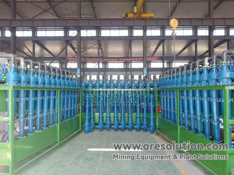 In the closed-circuit grinding and classification system with a section of mill, it has higher classification efficiency and finer overflow fineness under higher feed concentration, and the classification efficiency is 5-10% higher than that of the commonly used spiral classifier, which is conducive to the improvement of the utilization factor of the mill. According to the requirements of milling capacity, overflow fineness and sediment concentration, the correct selection of suitable specifications and models of cyclone is the prerequisite for achieving the optimal working conditions. We can provide Φ50, Φ75, Φ100, Φ125, Φ150, Φ200, Φ250, Φ300, Φ350, Φ500, Φ660, etc. as single, parallel or tandem units.
